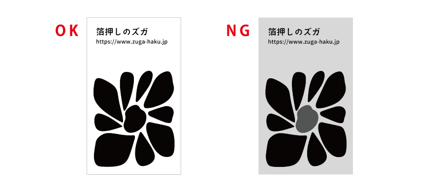 ■箔押しのデータは黒1色(#000000)で作成してください。箔押しは色の濃淡を表現することができません。