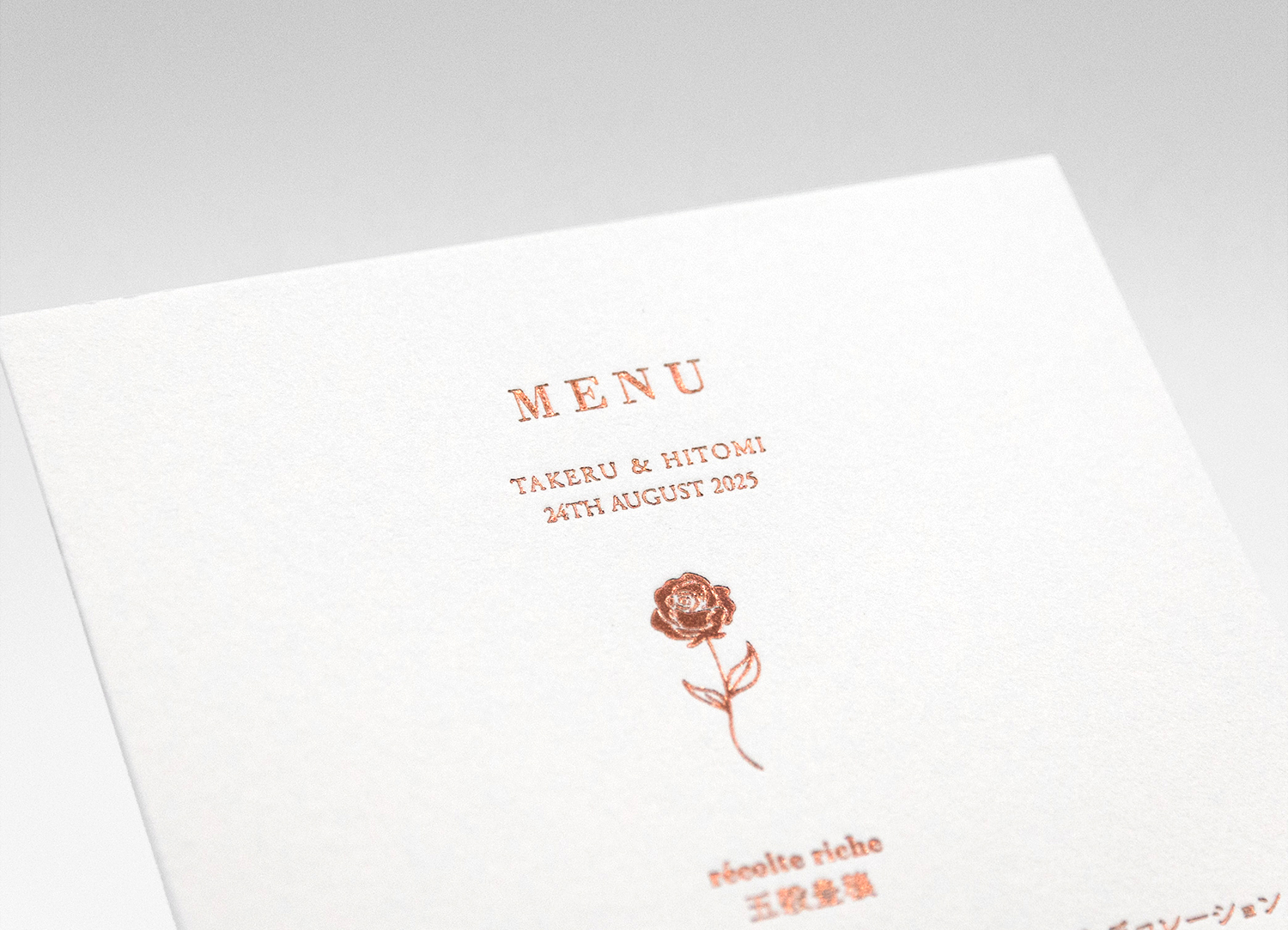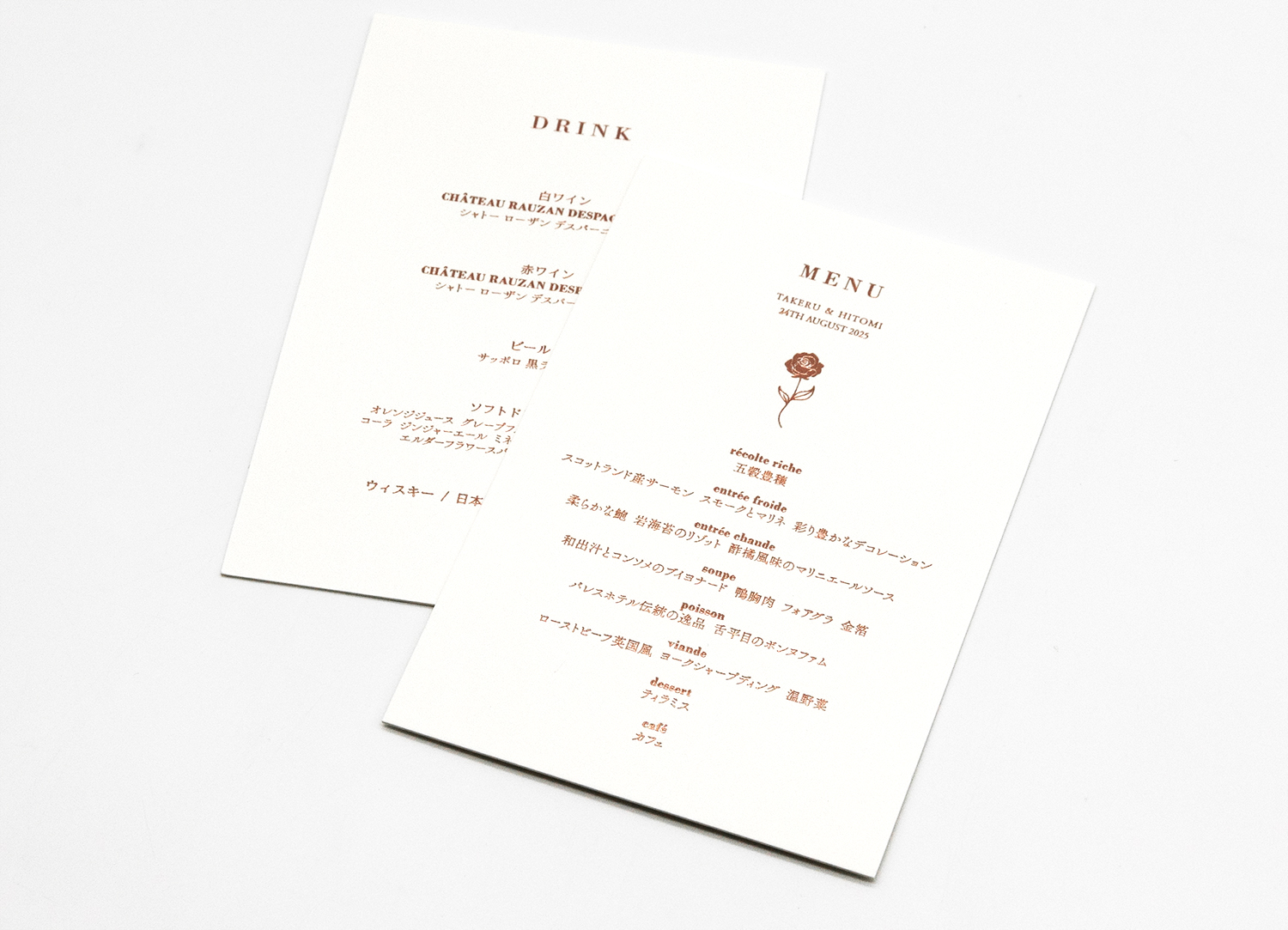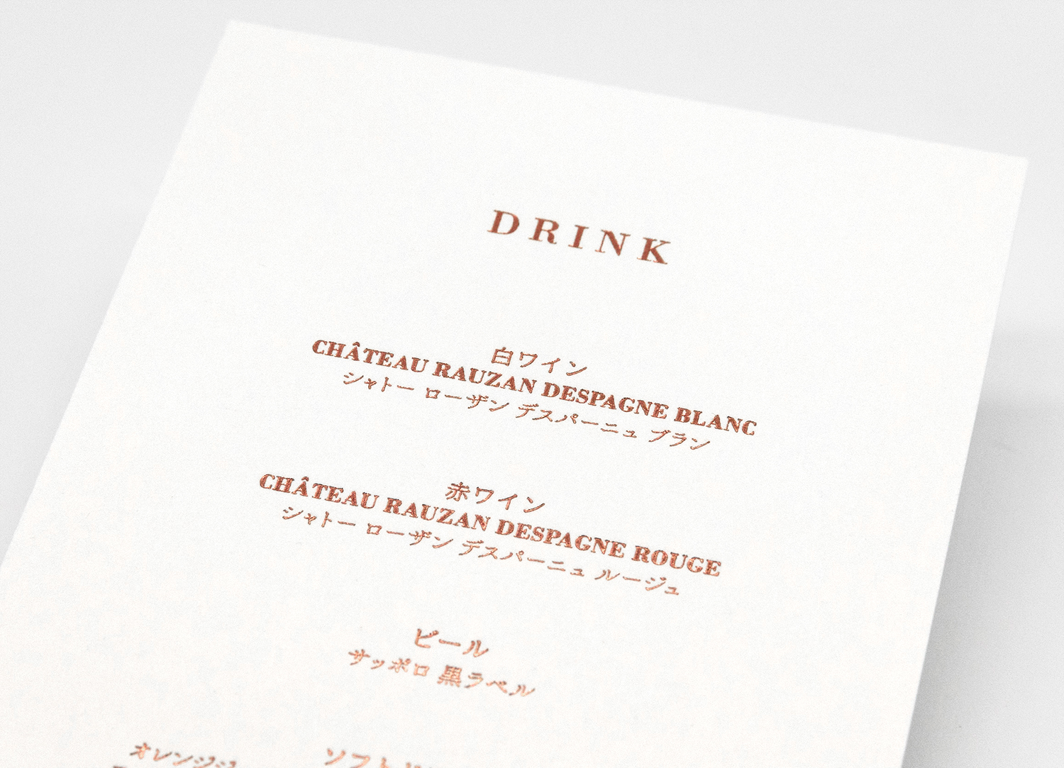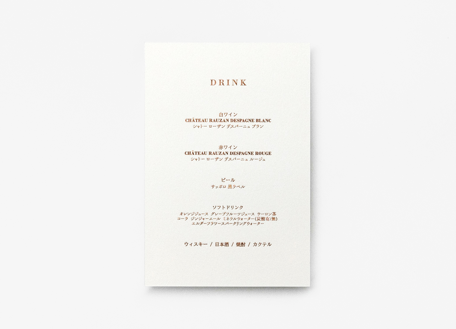 ウイスキーブラウン箔がそっと煌めき、洗練された上品なメニュー表に仕上がりました。