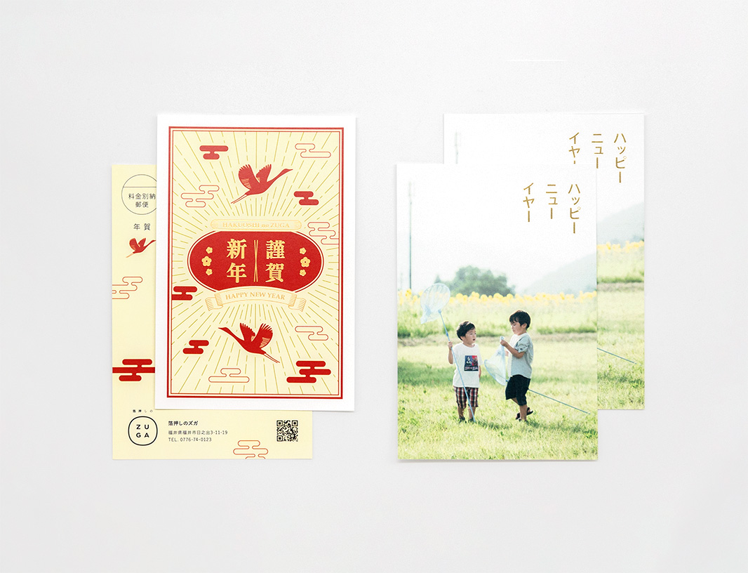 箔押しのズガの表示価格には、50㎠以内の版代・用紙代・片面の箔押し代が含まれています。