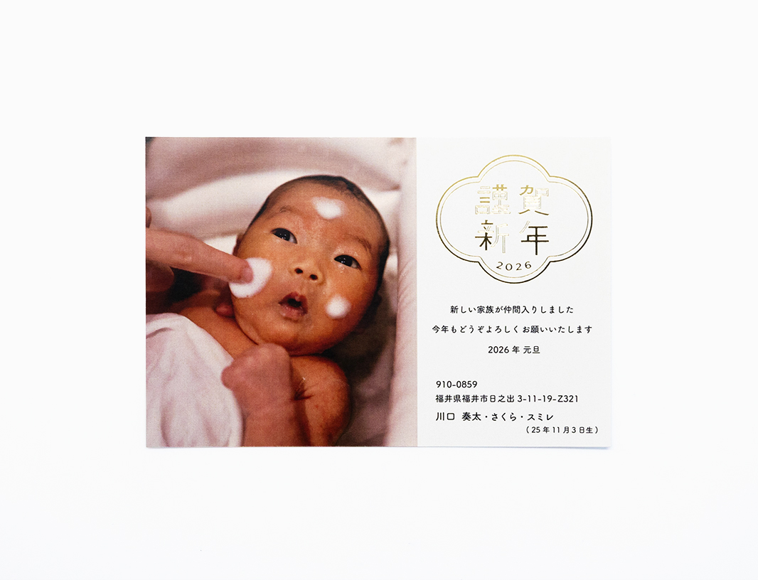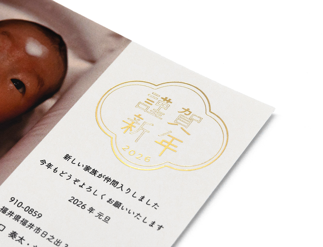 レイアウトはズガにお任せ。箔の色は自由にお選びください。
