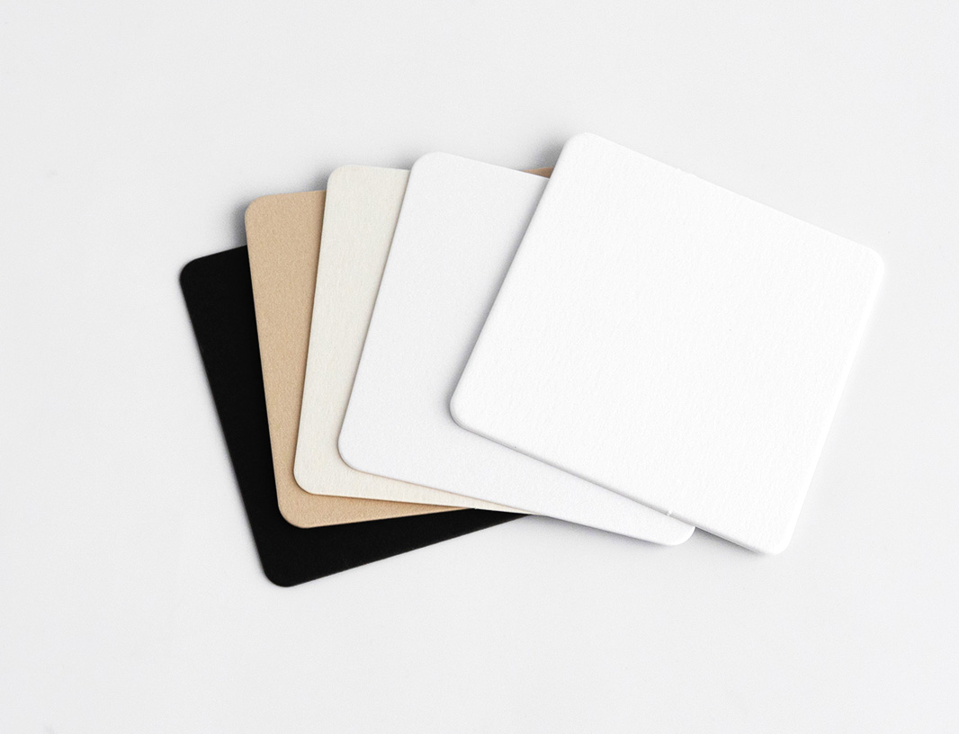ズガでご注文いただける紙コースター(90x90mm)のサンプルセットです。 【セット内容 全 10 種】 ・角(1mm厚/白・クリーム・薄茶・黒) ・角(2mm厚/白) ・丸(1mm厚/黒・白) ・丸(2mm厚/白) ・菊(1mm厚/白・クリーム) ・箔押しサンプル1枚 ( 紙と箔の組み合わせはランダム)